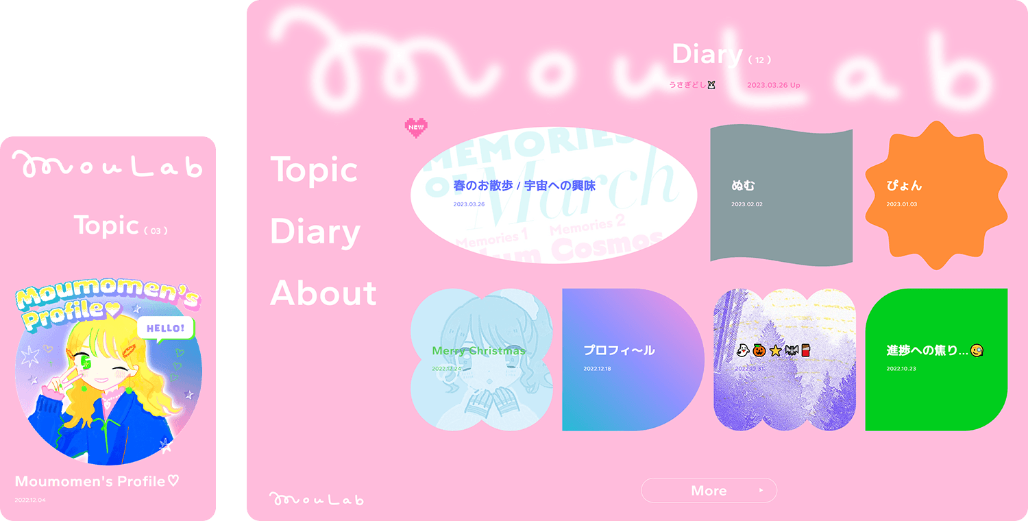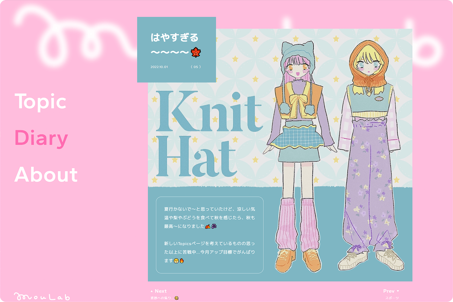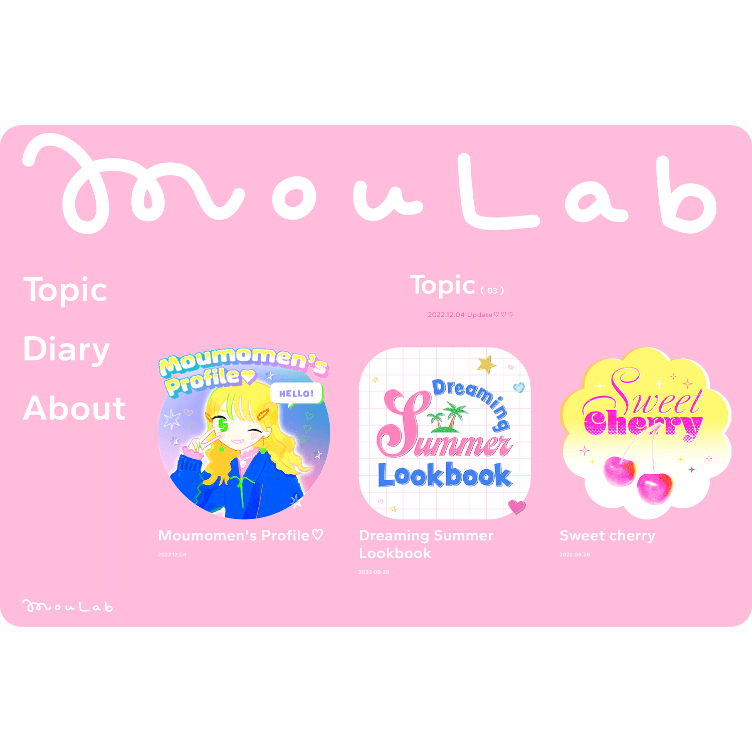 Moulab 自主制作 Type LP Area Web Design / Coding Launch 2022.08 Visit Site Next Sweet cherry LP Prev Dreaming Summer Lookbook LP