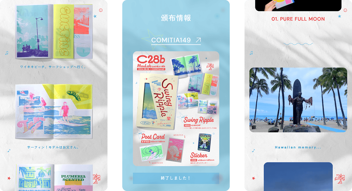 Hawaiian Scrapbook Zine 自主制作 Type ZINE / LP Area Editorial Design / Web Design / Coding Launch 2024.08 Visit Site Next PURE FULL MOON ZINE / LP Prev Lilt a bit Mash ZINE / LP