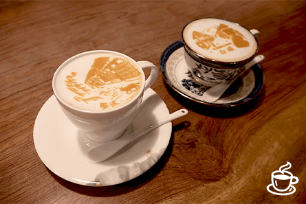 陶器とラテアートのデザインが